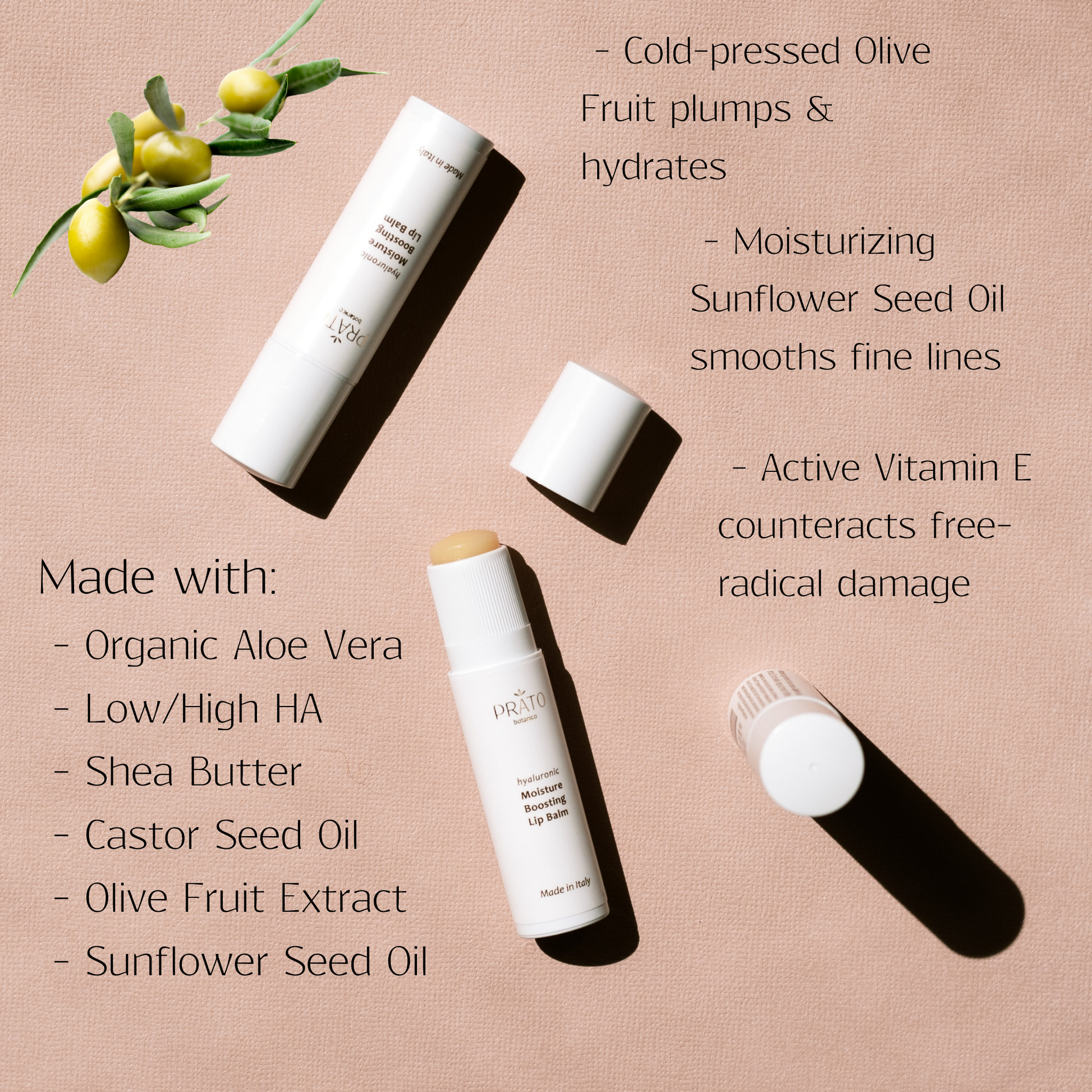 Prato Botanico offers the most natural, moisture-boosting best lip balm for dry lips infused with olive oil, shea butter, Vitamin E, sunflower, castor seed oil, and hyaluronic acid. Each of these ingredients has been carefully handpicked to ensure maximum protection and softness for all lips types.
